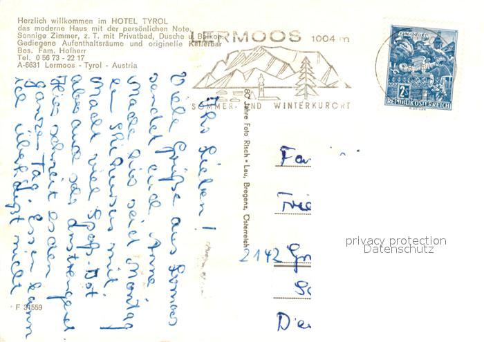 73493170 alte Postkarte Lermoos Tirol Hotel Tyrol postalisch gelaufen Erhaltung siehe scans [WerneD78] KatCode: 11390331070821