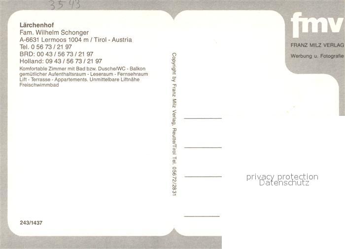 13188110 Lermoos Tirol Laerchenhof postalisch nicht gelaufen Erhaltung siehe scans [NatalD47] KatCode: 11390331070821