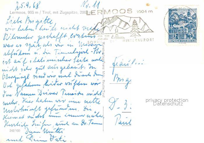 72773455 alte Postkarte Lermoos Tirol mit Zugspitze postalisch gelaufen Erhaltung siehe scans [FriedD77] KatCode: 11390331070821
