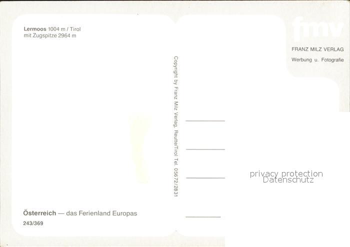 72455528 Lermoos Tirol Ortsansicht mit Kirche Zugspitze Wettersteingebirge postalisch nicht gelaufen Erhaltung siehe scans KatCode: 11390331070821