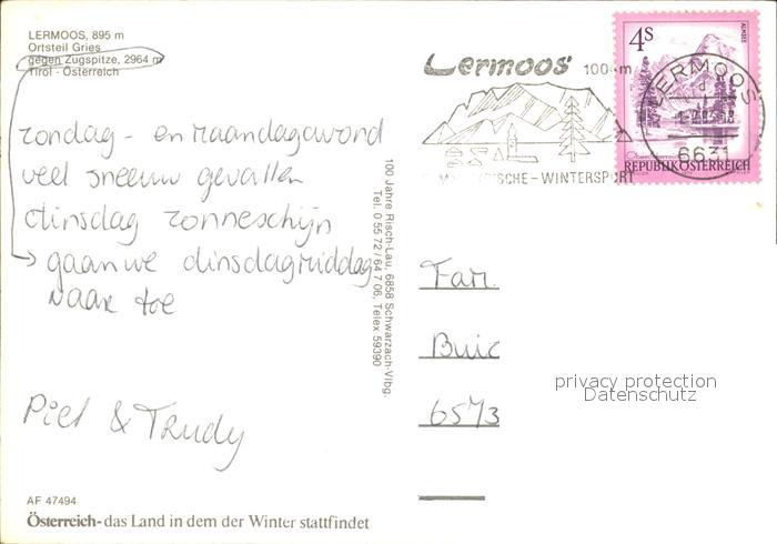 72092226 alte Postkarte Lermoos Tirol OT Gries mit Zugspitze postalisch gelaufen Erhaltung siehe scans KatCode: 11390331070821