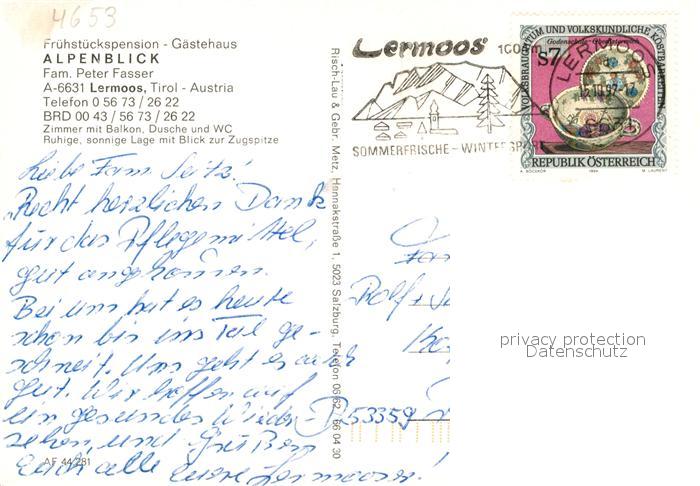 13189218 alte Postkarte Lermoos Tirol Pension Alpenblick postalisch gelaufen Erhaltung siehe scans [NatalD47] KatCode: 11390331070821