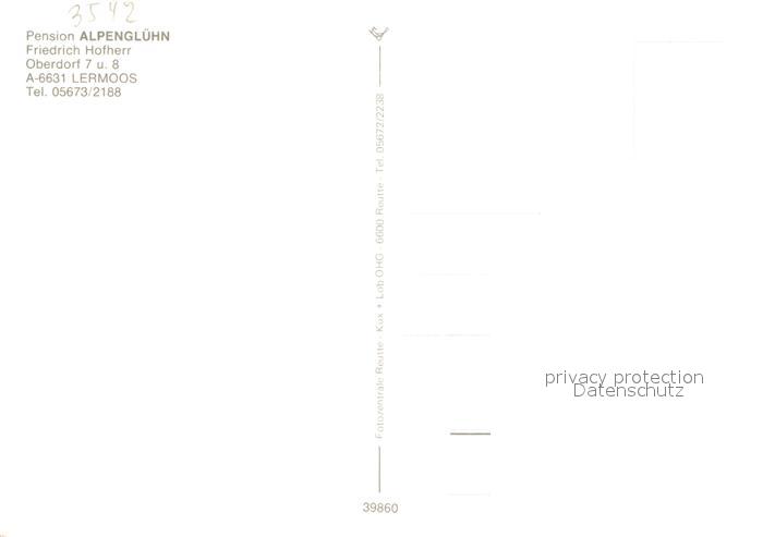 13188111 Lermoos Tirol Pension Alpengluehn postalisch nicht gelaufen Erhaltung siehe scans [NatalD47] KatCode: 11390331070821