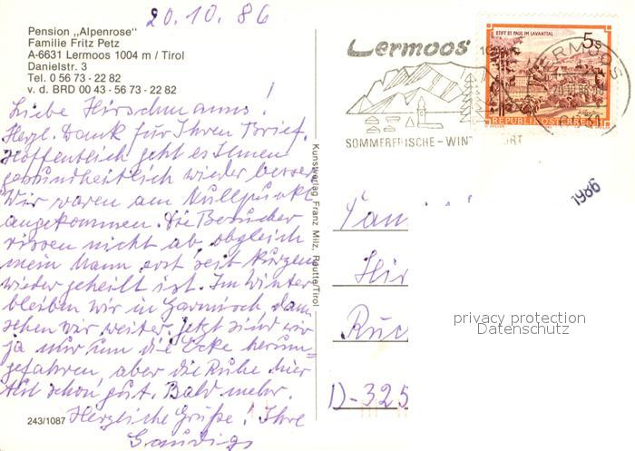 13223732 alte Postkarte Lermoos Tirol Pension Alpenrose postalisch gelaufen Erhaltung siehe scans [LiesaD40] KatCode: 11390331070821