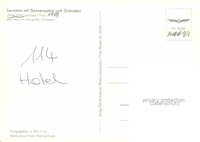 72773690 Lermoos Tirol Sonnenspitze Gruenstein postalisch nicht gelaufen Erhaltung siehe scans [AndreD76] KatCode: 11390331070821