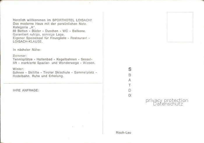 72051011 Lermoos Tirol Sporthotel Loisach Gastraum Zimmer postalisch nicht gelaufen Erhaltung siehe scans KatCode: 11390331070821