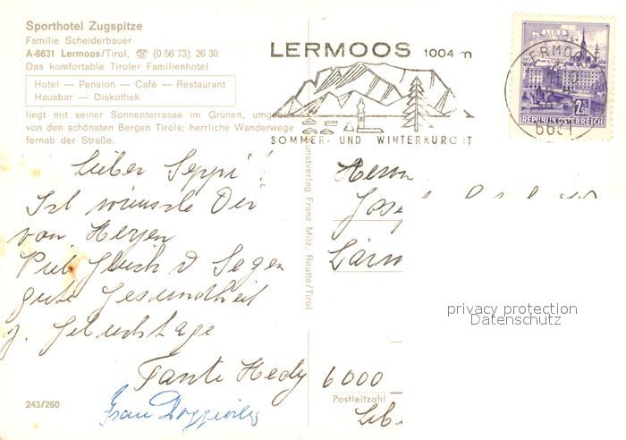 73236938 alte Postkarte Lermoos Tirol Sporthotel Zugspitze postalisch gelaufen Erhaltung siehe scans [KathaD81] KatCode: 11390331070821