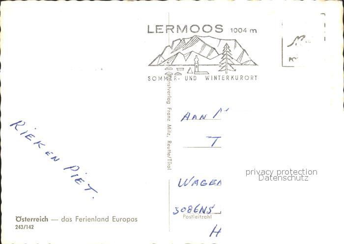 72093068 alte Postkarte Lermoos Tirol Zugspitze Fernpass Ehrwald Seebensee postalisch gelaufen Erhaltung siehe scans KatCode: 11390331070821