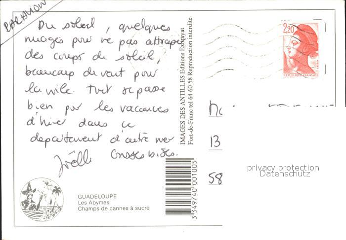 old postcard Les Abymes Champs de cannes a sucre Zuckerrohrfelder postalisch gelaufen Erhaltung siehe scans