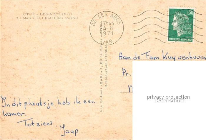 13011872 carte postale Les Arcs La Mairie Hotel des Postes postalisch gelaufen Erhaltung siehe scans [NatalD47] KatCode: 11170083183004