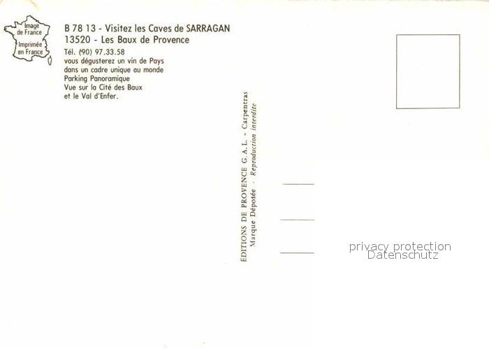 12619558 Les Baux-de-Provence Les Caves de Sarragan vin de Pays postalisch nicht gelaufen Erhaltung siehe scans [FriedD77] KatCode: 11170013213011