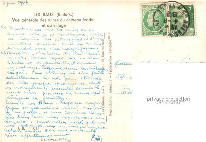 13520968 carte postale Les Baux-de-Provence Ruines du Chateau feodal et du village postalisch gelaufen Erhaltung siehe scans [LiesaD40] KatCode: 11170013213011