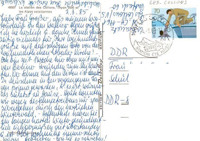 13942772 alte Postkarte Les Collons VS La station des Collons Thyon 2000 et les Alpes valaisannes postalisch gelaufen Erhaltung siehe scans [FriedD77] KatCode: 11470230710514