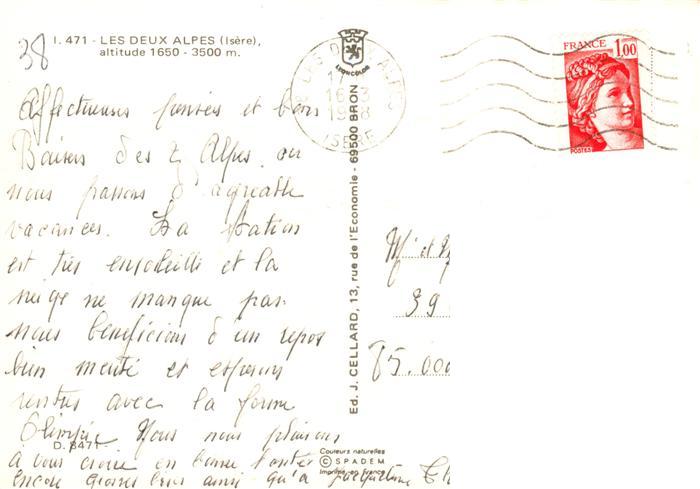 13945790 Les Deux Alpes 38 Isere Hotel Panorama Skifahren postalisch gelaufen Erhaltung siehe scans [WerneD78] carte postale Wern Katcode 11170038138191