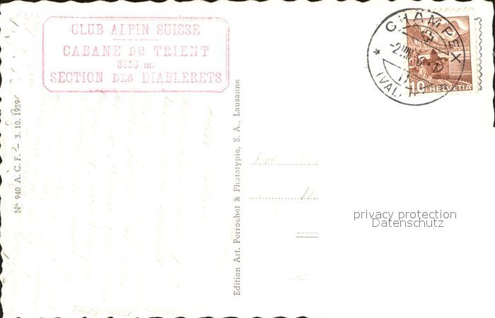 11853302 alte Postkarte Les Diablerets Cabane du Trient et les Aig Dorees postalisch gelaufen Erhaltung siehe scans KatCode: 11470300230678
