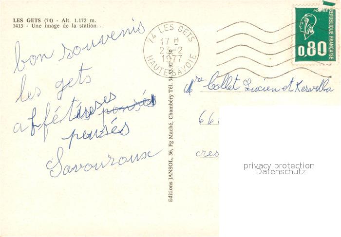 13640236 Les Gets Haute Savoie Une image de la station en hiver postalisch gelaufen Erhaltung siehe scans [FriedD77] carte postale Frie Katcode 11170074274134
