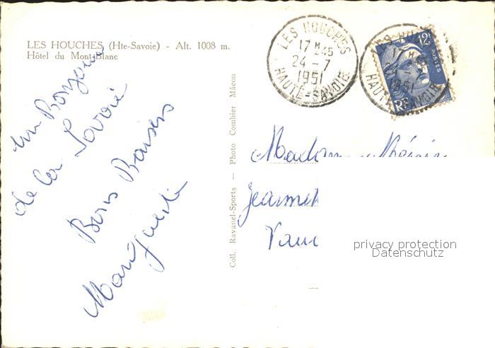 12019101 carte postale Les Houches Hotel du Mont Blanc postalisch gelaufen Erhaltung siehe scans KatCode: 11170074274143