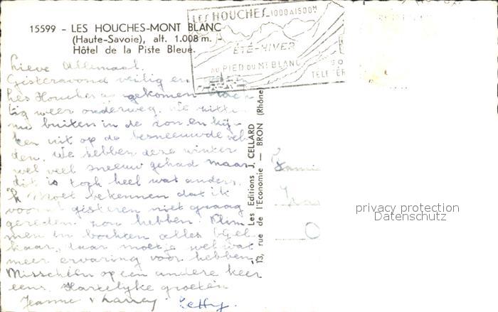 11981422 carte postale Les Houches Mont Blanc Hotel de la Piste Bleue postalisch gelaufen Erhaltung siehe scans KatCode: 11170074274143
