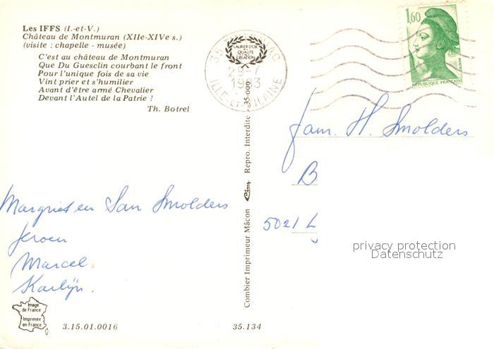 12935416 carte postale Les Iffs Chateau de Montmuran postalisch gelaufen Erhaltung siehe scans [WerneD78] KatCode: 11170035335134