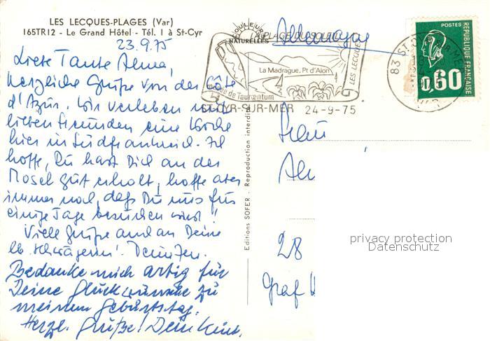 13477854 carte postale Les Lecques Var Grand Hotel vue aérienne postalisch gelaufen Erhaltung siehe scans [FriedD77] KatCode: 11170083283112