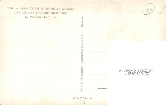 13493808 Les Milles Sanatorium du Petit Arbois Le Pavillon Laennec postalisch nicht gelaufen Erhaltung siehe scans [WerneD78] KatCode: 11170013113001