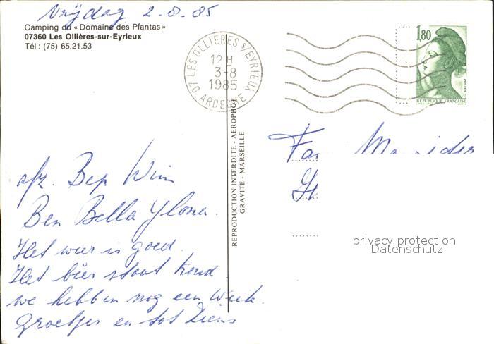 12287980 carte postale Les Ollieres-sur-Eyrieux Fliegeraufnahme Camping Domaine des Plantas postalisch gelaufen Erhaltung siehe scans KatCode: 11170007207167