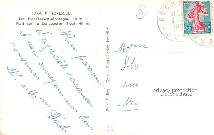 13504066 carte postale Les Planches-en-Montagne Jura Pont sur la Langouette postalisch gelaufen Erhaltung siehe scans [FriedD77] KatCode: 11170039239424