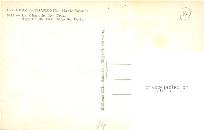 13488939 Les Praz Chapelle Aiguille du Dru Aiguille Verte Alpes Francaises postalisch nicht gelaufen Erhaltung siehe scans [FriedD77] KatCode: 11170074274056