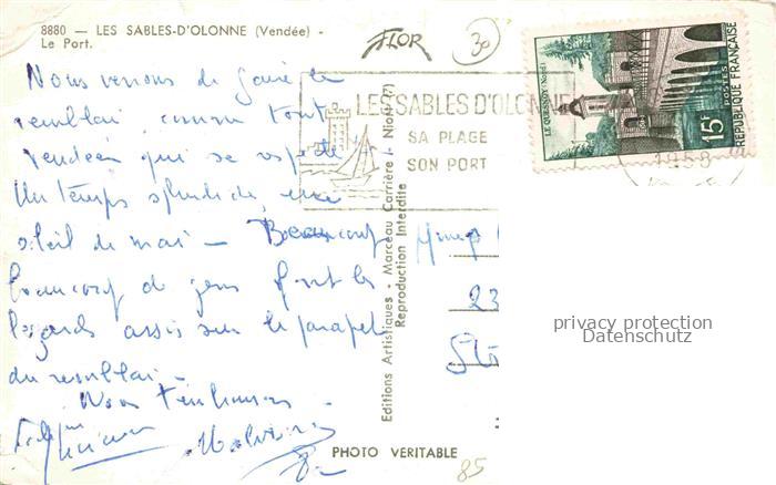 14114895 Les Sables-d Olonne 85 Le port postalisch gelaufen Erhaltung siehe scans [FriedD77] carte postale Frie Katcode 11170085385194