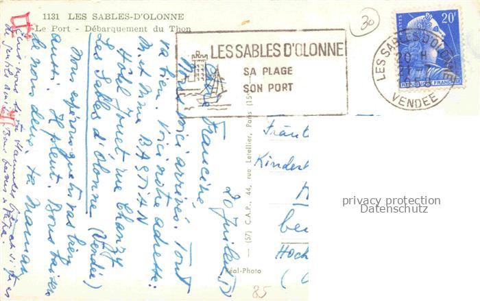14114893 Les Sables-d Olonne 85 Le Port Débarquement du Thon postalisch gelaufen Erhaltung siehe scans [FriedD77] carte postale Frie Katcode 11170085385194