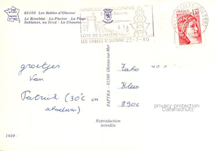 13796788 Les Sables-d Olonne 85 Le Remblai La Piscine La Plage Sablaises La Chaume postalisch gelaufen Erhaltung siehe scans [WerneD78] carte postale Wern Katcode 11170085385194