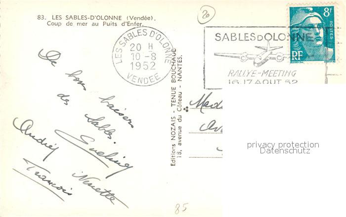 13485804 carte postale Les Sables-d Olonne Coup de mer au Puits d Enfer postalisch gelaufen Erhaltung siehe scans [WerneD78] KatCode: 11170085385194