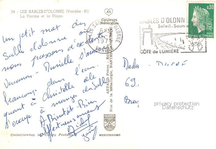 carte postale Les Sables-d Olonne La piscine et la plage postalisch gelaufen Erhaltung siehe scans [FriedD77]