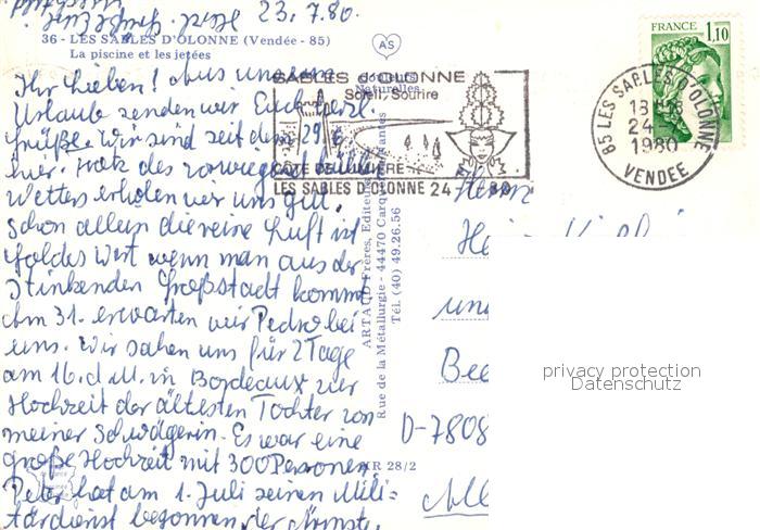 13479130 carte postale Les Sables-d Olonne La piscine et les jetées Plage postalisch gelaufen Erhaltung siehe scans [FriedD77] KatCode: 11170085385194