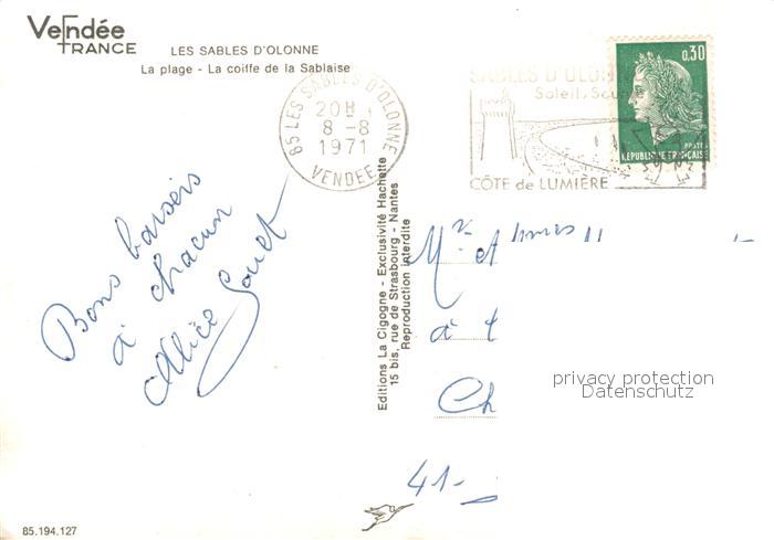 carte postale Les Sables-d Olonne La plage La coiffe de la Sablaise postalisch gelaufen Erhaltung siehe scans [WerneD78]