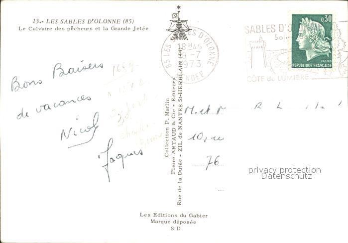 12234229 carte postale Les Sables-d Olonne Le Calvaire des pecheurs Grande Jetée postalisch gelaufen Erhaltung siehe scans KatCode: 11170085385194