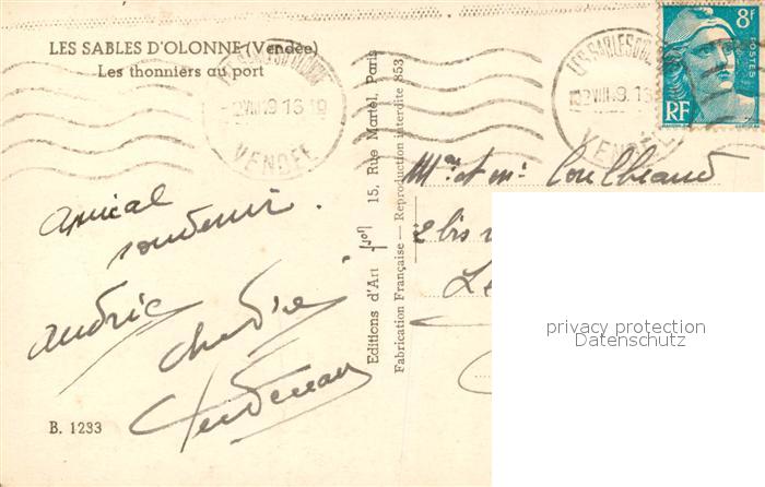 13533639 carte postale Les Sables-d Olonne Les thonniers au port postalisch gelaufen Erhaltung siehe scans [FriedD77] KatCode: 11170085385194