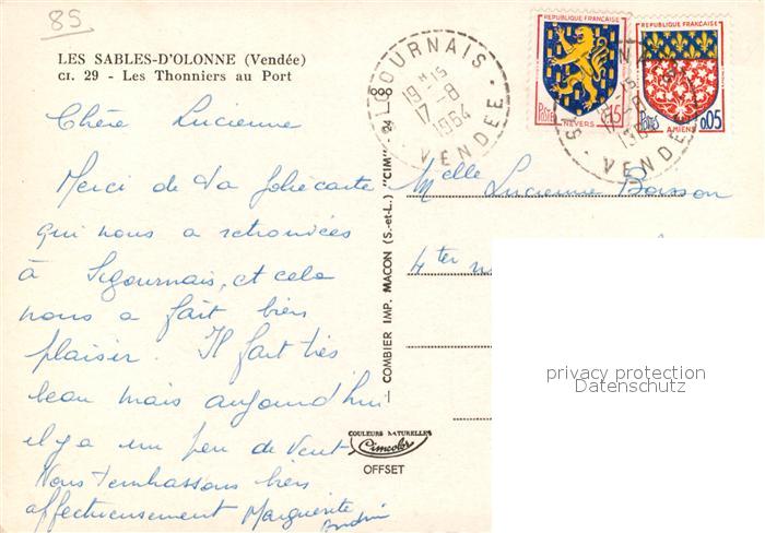 13593825 Les Sables-d Olonne Les Thonniers au Port postalisch gelaufen Erhaltung siehe scans [WerneD78] carte postale Wern Katcode 11170085385194