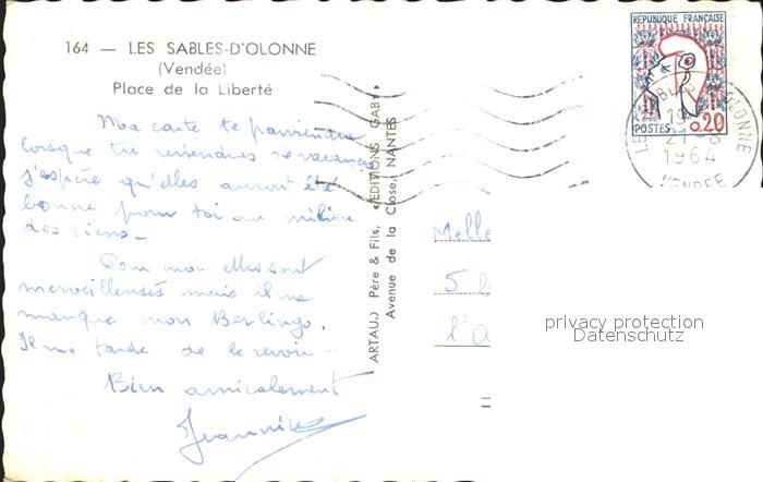 12034205 carte postale Les Sables-d Olonne Place de la Liberte postalisch gelaufen Erhaltung siehe scans KatCode: 11170085385194