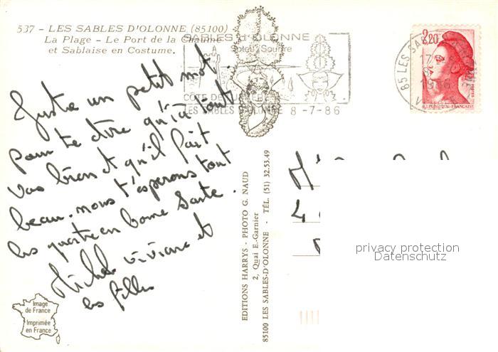 13536468 carte postale Les Sables-d Olonne Plage Port de la Chaume Sablaise en costume postalisch gelaufen Erhaltung siehe scans [FriedD77] KatCode: 11170085385194