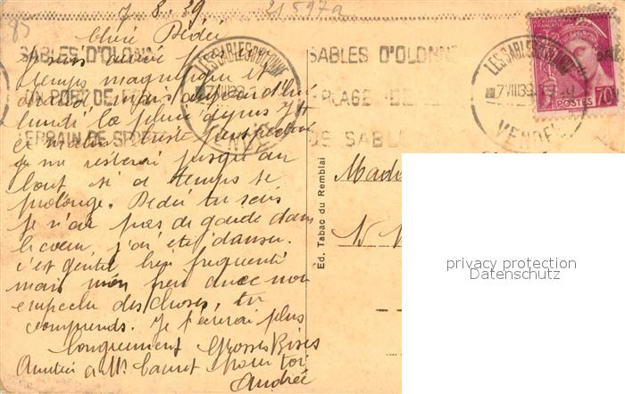 13526881 carte postale Les Sables-d Olonne Vue de la plage postalisch gelaufen Erhaltung siehe scans [FriedD77] KatCode: 11170085385194