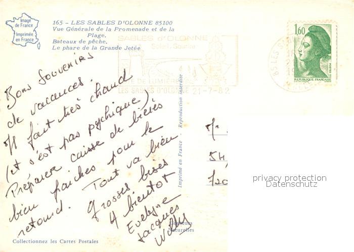 13663305 Les Sables-d Olonne Vue generale de la Promenade et de la Plage Bateaux de peche Le phare de la Grande Jetee postalisch gelaufen Erhaltung siehe scans [WerneD78] carte postale Wern Katcode 11170085385194