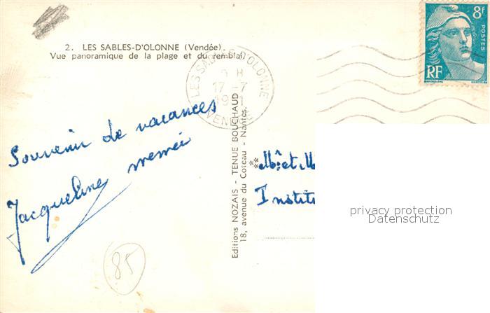 13530919 carte postale Les Sables-d Olonne Vue panoramique de la plage et du remblai postalisch gelaufen Erhaltung siehe scans [FriedD77] KatCode: 11170085385194