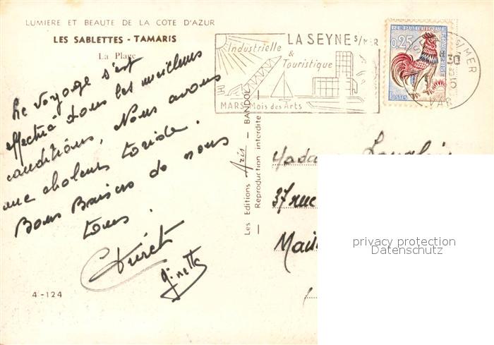 13590131 Les Sablettes Tamaris La Plage postalisch gelaufen Erhaltung siehe scans [WerneD78] carte postale Wern Katcode 11170083283126