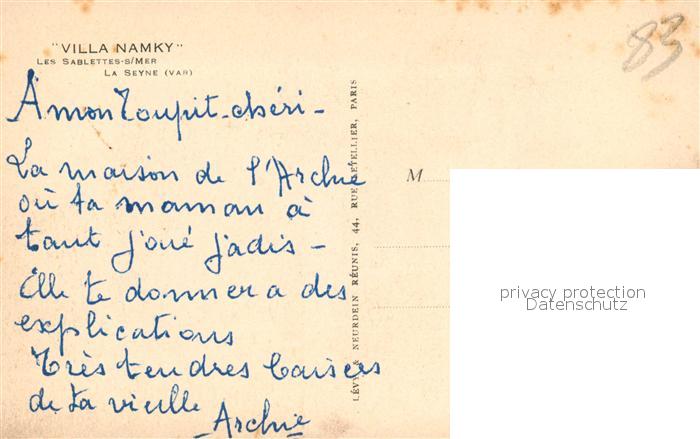 13573333 Les Sablettes Villa Namky postalisch nicht gelaufen Erhaltung siehe scans [WerneD78] KatCode: 11170083283126