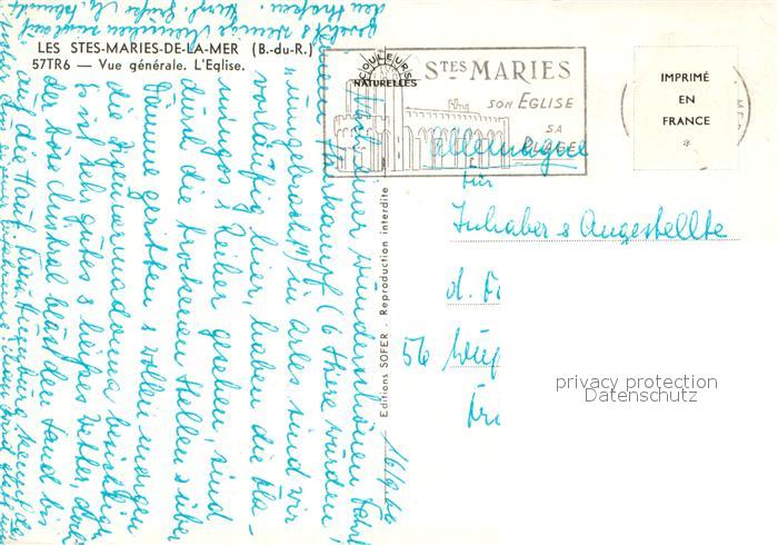 13638648 Les Saintes-Maries-de-la-Mer Eglise Centre vue aérienne postalisch gelaufen Erhaltung siehe scans [FriedD77] carte postale Frie Katcode 11170013213096