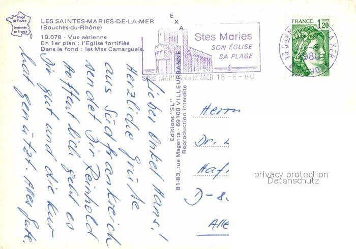 12785171 carte postale Les Saintes-Maries-de-la-Mer Eglise fortifiee Les Mas Camarguais vue aerienne postalisch gelaufen Erhaltung siehe scans [FriedD77] KatCode: 11170013213096