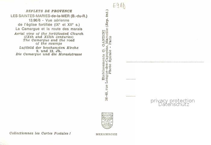 12788196 Les Saintes-Maries-de-la-Mer Fliegeraufnahme der beschanzten Kirche mit Camargue und Morasistrasse postalisch nicht gelaufen Erhaltung siehe scans [WerneD78] KatCode: 11170013213096