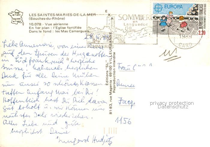 13119883 carte postale Les Saintes-Maries-de-la-Mer Fliegeraufnahme Eglise fortifiee postalisch gelaufen Erhaltung siehe scans [LiesaD40] KatCode: 11170013213096