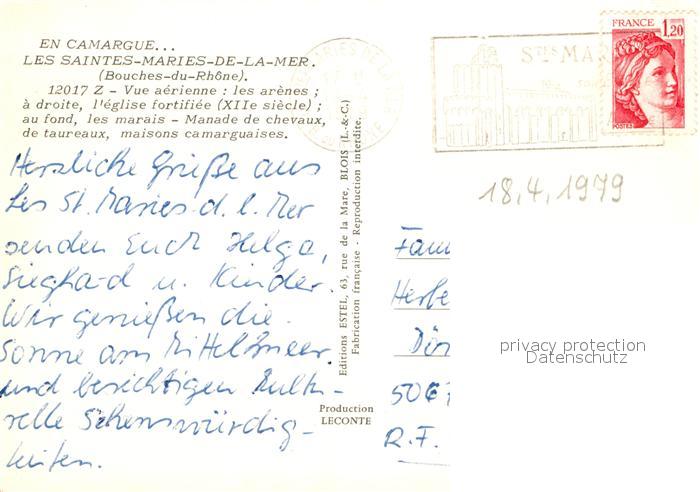 13004295 carte postale Les Saintes-Maries-de-la-Mer Fliegeraufnahme Pferde Stier postalisch gelaufen Erhaltung siehe scans [KathaD81] KatCode: 11170013213096